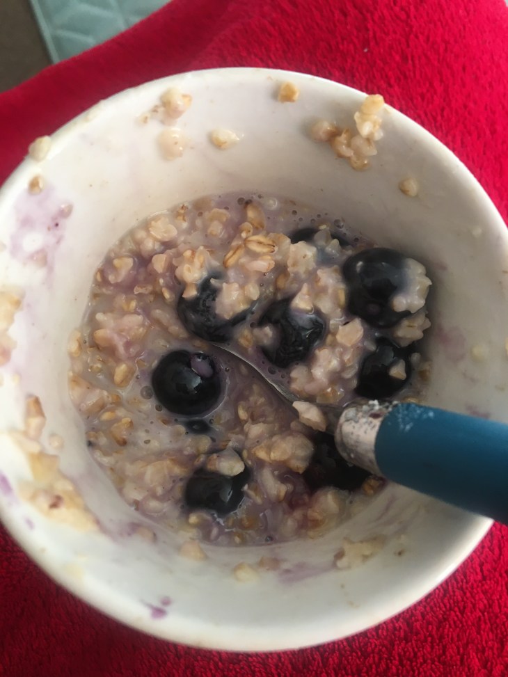 Breakfast: oatmeal with blueberries