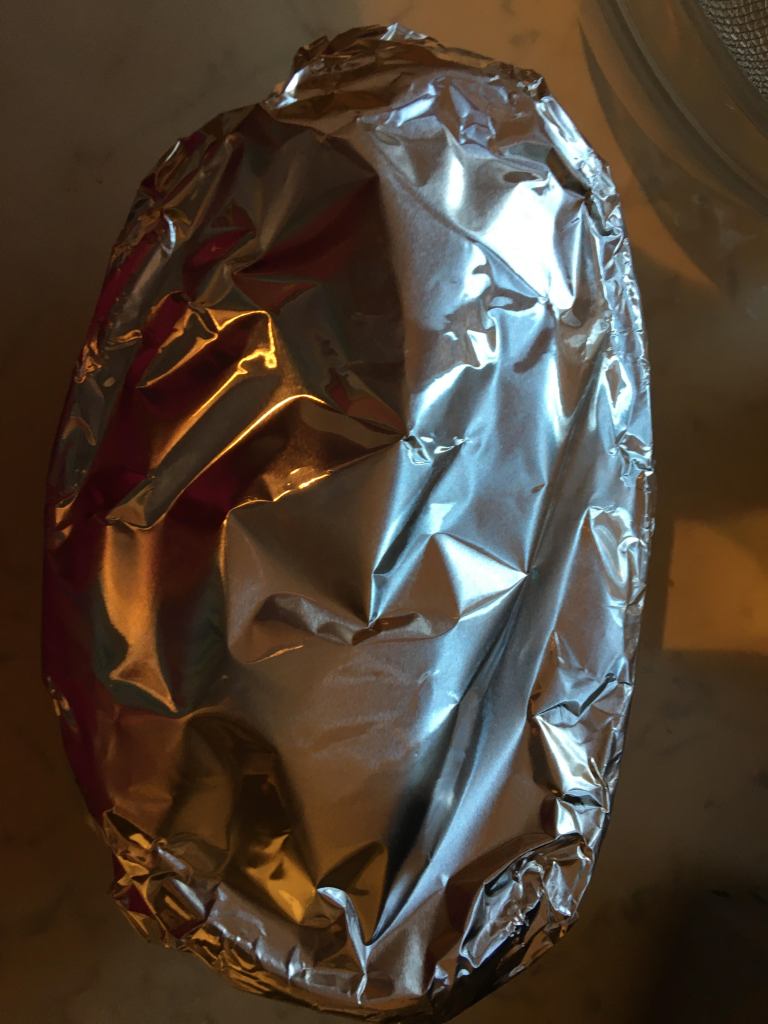 Once I removed the air bubbles, I rapped it with tin-foil.