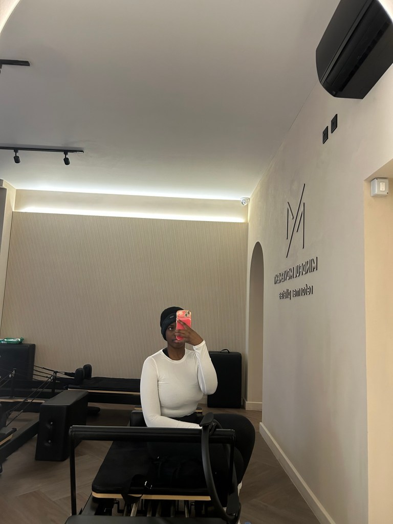 Since I didn’t understand the Reformer Pilates terminology, I watched another woman to see if I was doing it properly and for guidance.
